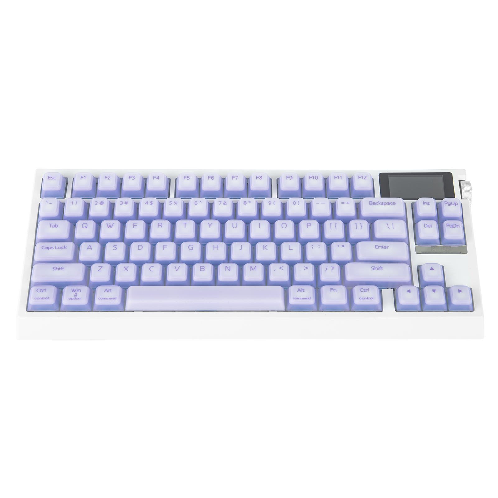 화면이 탑재된 G84 PRO 커스텀 키보드로 여러분의 책상을 개인화된 커맨드 센터로 변신시키세요. 필수 정보를 손끝에서 확인할 수 있는 통합형 커스텀 가능 글래스 스크린을 활용해보세요: 정보 페이지에서 배터리 잔량, 시간, 키보드 상태 같은 주요 정보를 확인하거나, 전용 GIF 페이지를 통해 애니메이션, 낙서 또는 GIF로 키보드를 독특한 책상 위 예술 작품으로 만들어 보세요. 모든 것은 웹 기반 소프트웨어를 통해 쉽게 업로드할 수 있습니다. RGB 설정용 컨트롤 패널 역할도 겸하는 이중 기능 볼륨 노브(FN+노브로 전환)로 백라이트 커스텀을 위한 스크린을 탐색할 수도 있습니다.