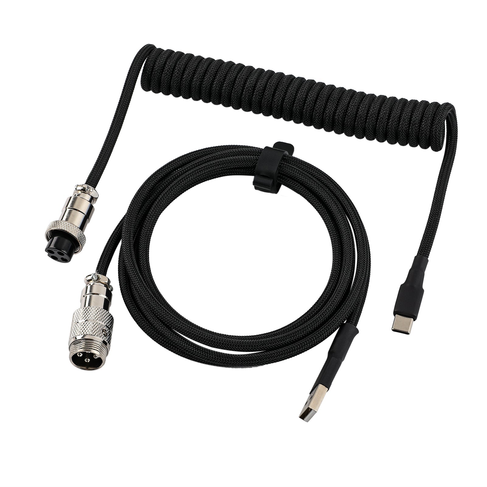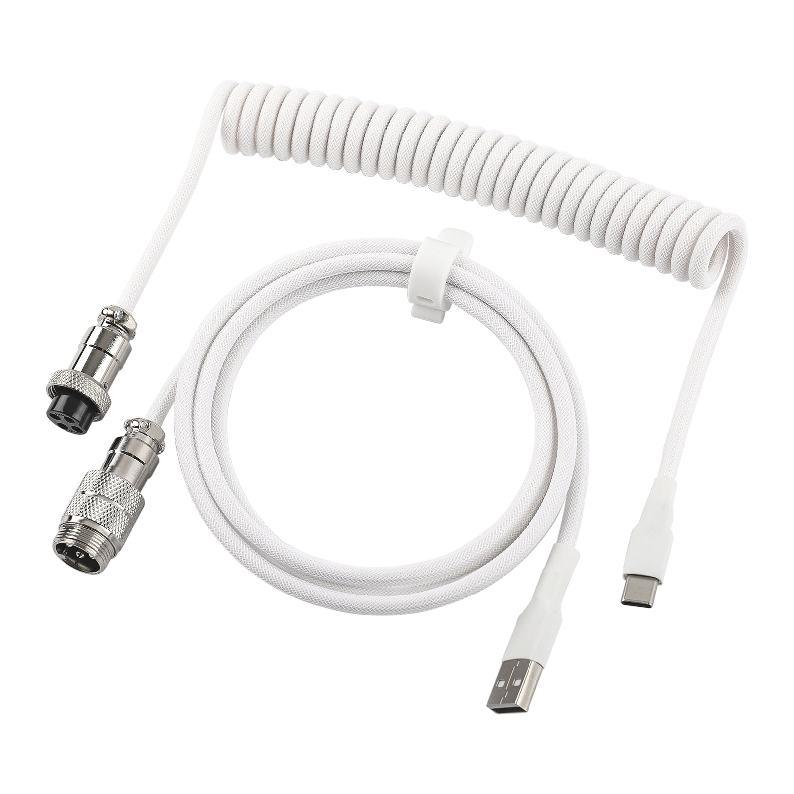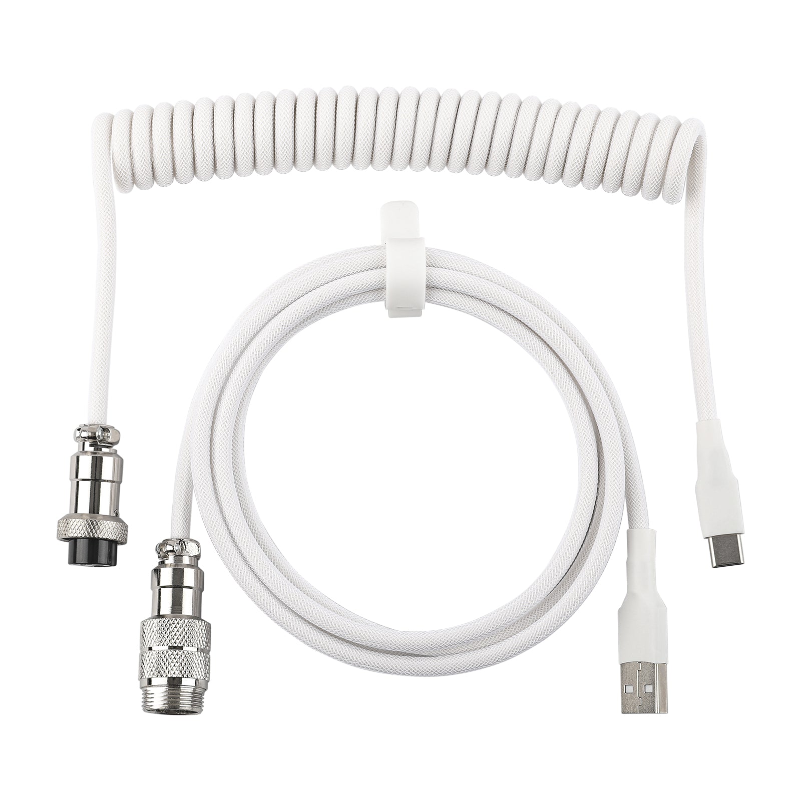 The EPOMAKER Mix V2 coiled keyboard cable enhances your setup with a practical strap for tidy storage, keeping the cable portable and free from tangles. Its improved coil design prevents overstretching, ensuring optimal flexibility and length. The durable, double-sleeved build and the quick-swap metal aviator connector make this cable a streamlined and essential addition to any desk.