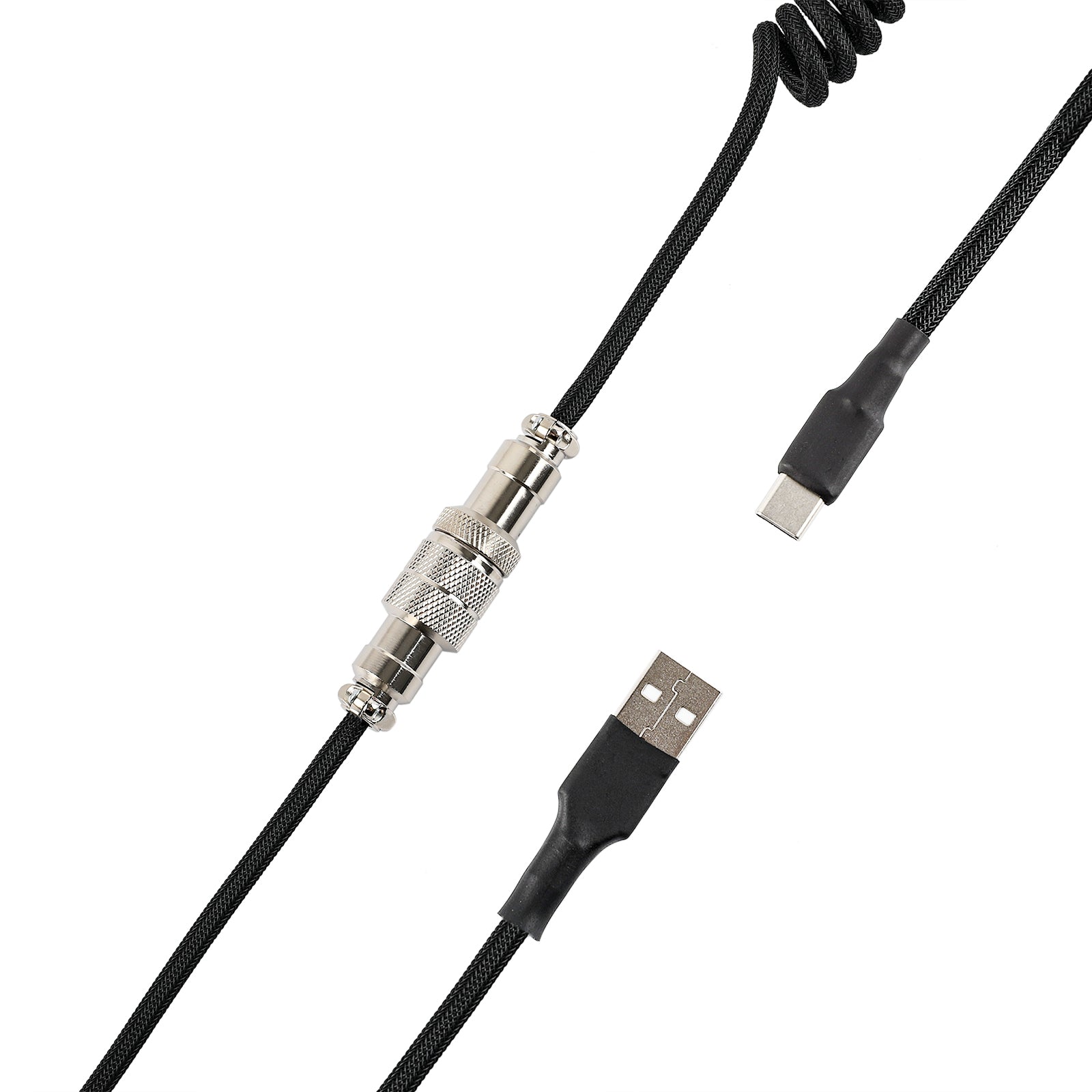 Coiled USB C to USB A Double-Sleeved Cable for Mechanical Gaming Keyboard