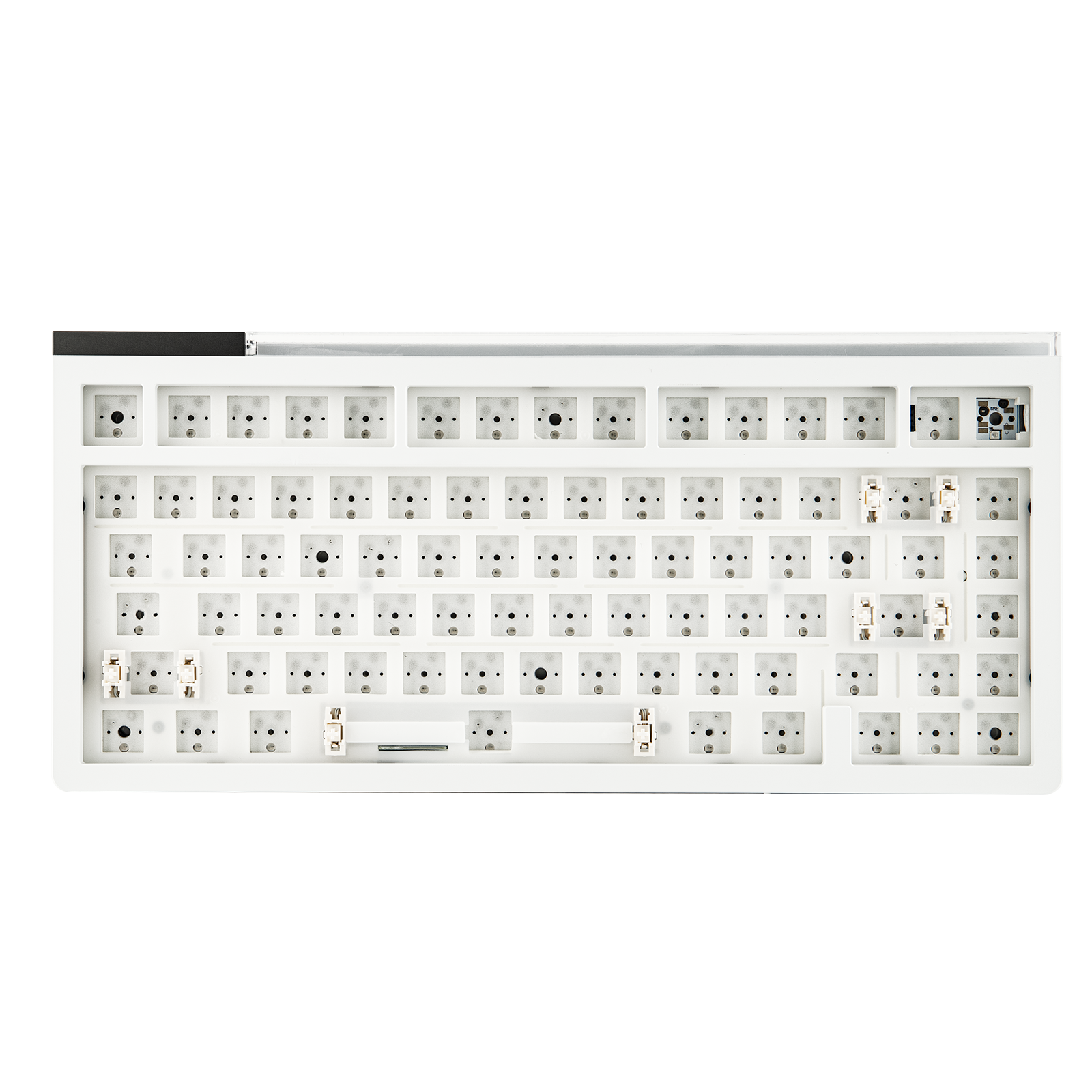 Equipped with a Leaf-spring gasket-mounted structure and multiple sound-dampening layers—Poron sandwich foam, IXPE switch pads, clear PET film, and pre-cut EPDM switch socket foam with removable adhesive—the GLOW75 minimizes vibration and noise. This ensures a quieter, more controlled typing experience for shared offices, late-night work, or content creation.