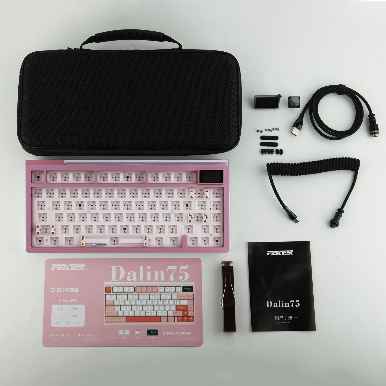 75% Aluminum Keyboard DIY Kit with Detachable Mini Screen and RGB Light Bar